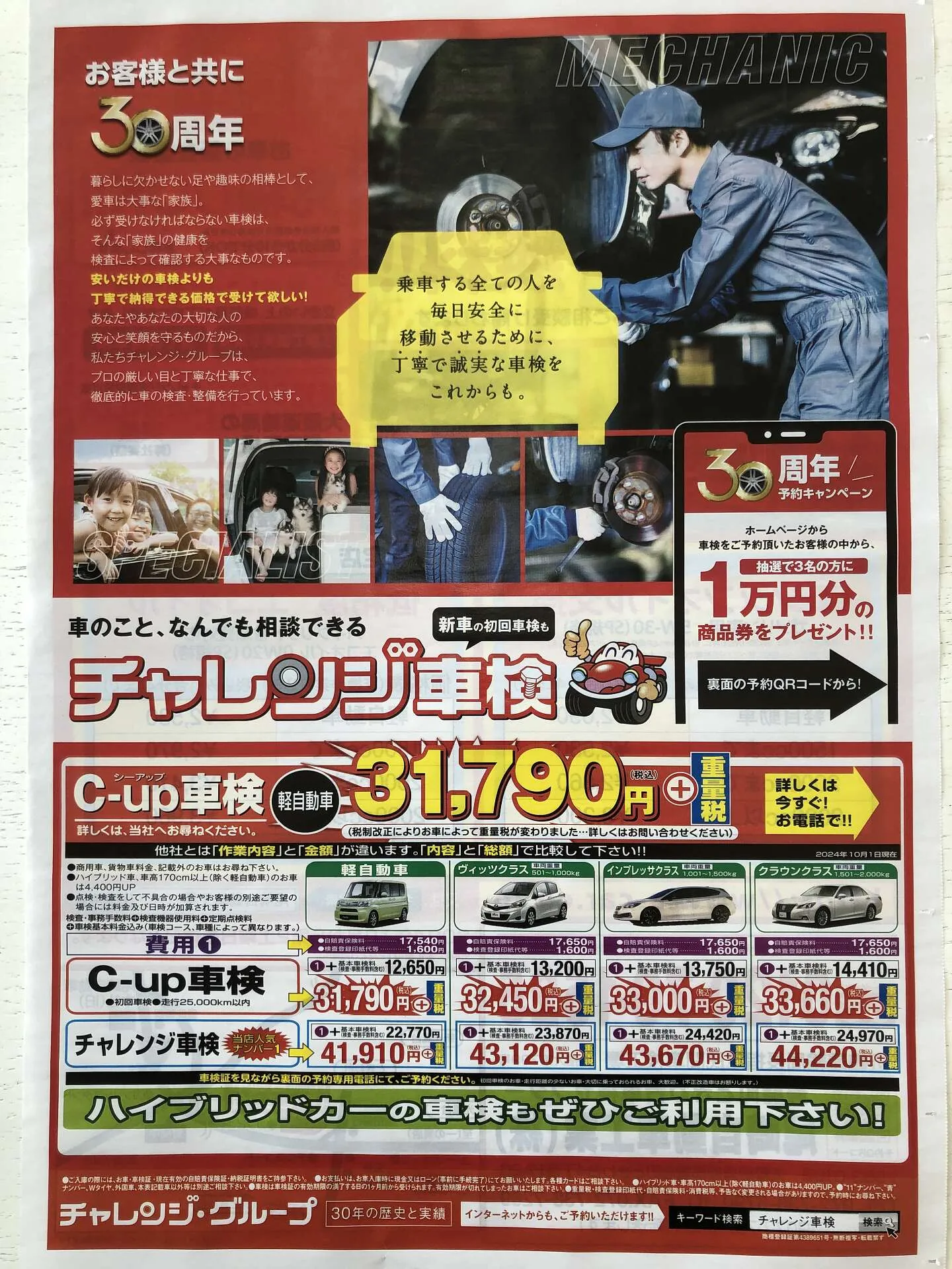 チャレンジ車検は、整備保証付きです。(6ケ月又は10,000Km以内で整備済み箇所に限ります)